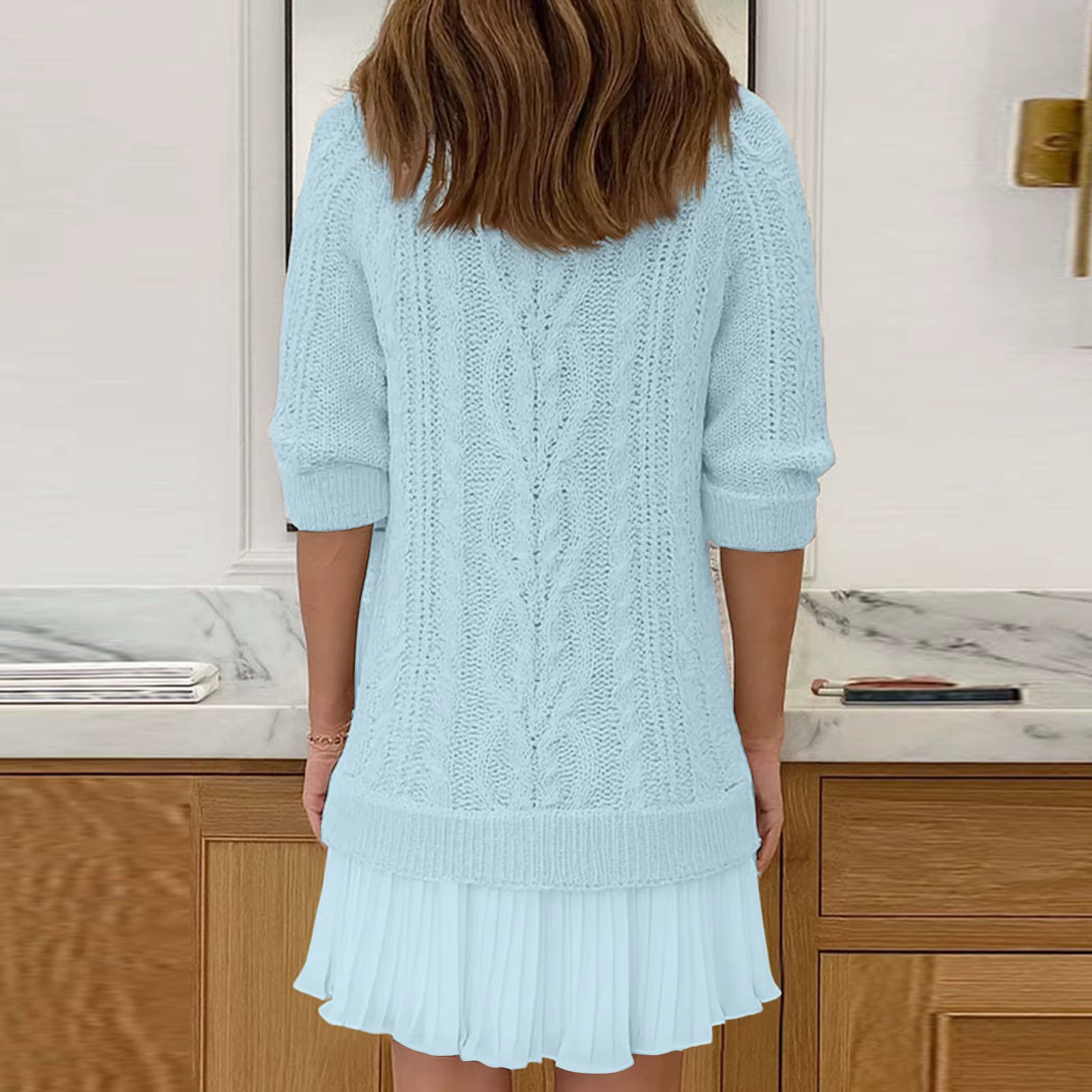 With a lightweight knit and gentle stretch, this dress provides a comfortable feel from morning to evening. It fits smoothly on the body without feeling restrictive, making it a practical choice for women who appreciate comfort combined with a soft, feminine touch.