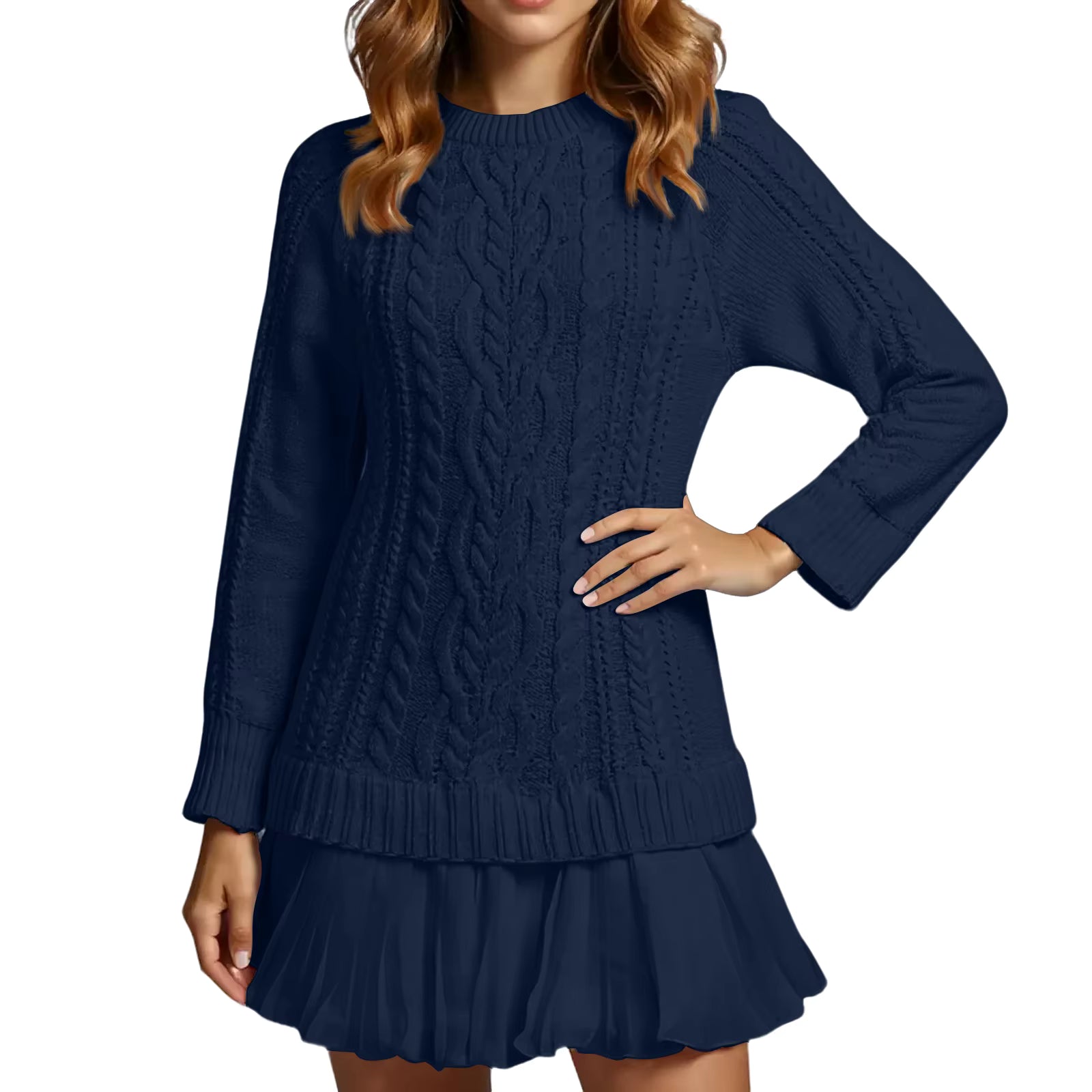 This knitted mini dress brings a gentle and feminine look ideal for everyday wear. The round neckline creates a clean frame, while the textured knit adds subtle visual interest. Designed for comfort and easy styling, it offers a relaxed yet flattering shape that adapts well to different moments of the day.